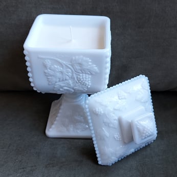 Vntg Westmoreland Milk Glass Grape Lidded Candy Dish Candle