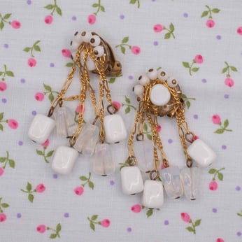 Pink Confetti Lucite & Rhinestone Clip On Earrings
