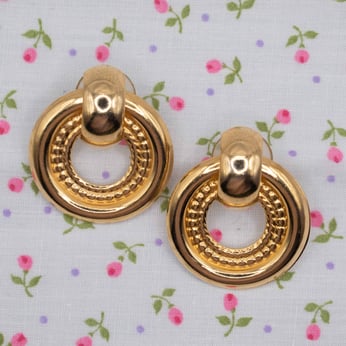 Gold Tone Door Knocker Double Hoop Pierced Earrings