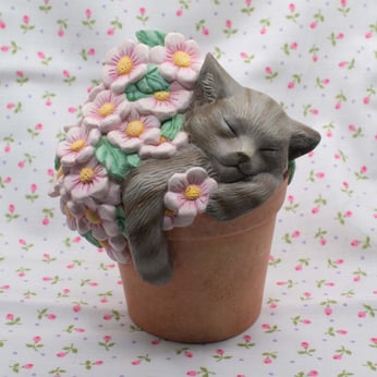 2000 Lenox Pretty in Pink Sleepy Gray Kitty Figurine