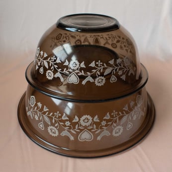 2 Pyrex Festive Harvest Birds & Hearts Mixing Bowls
