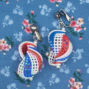 Red White & Blue Plastic Sheet Spiral Clip On Earrings