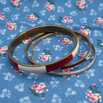 3pc Red & White Enameled Gold Tone Metal Bangle Bracelets