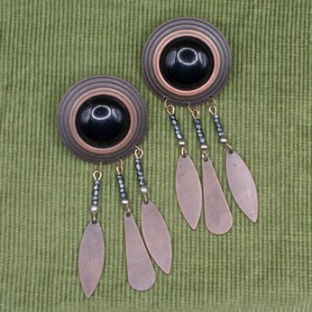 Southwestern Style Bronze Tone Beaded Dangle Pierced Earrings